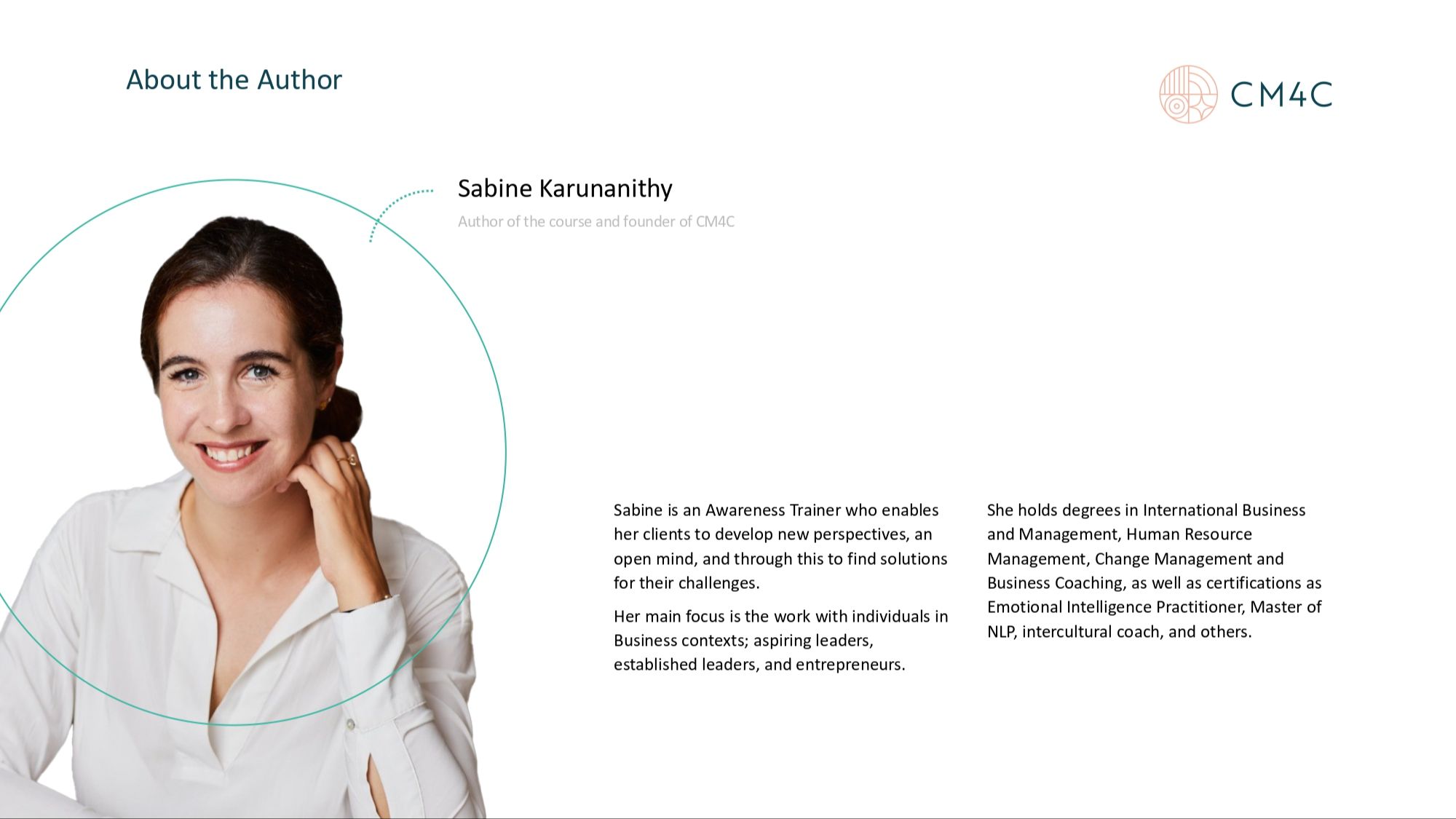 I highly recommend this course with Sabine because not only does she challenge you but pushes you beyond your thoughts and limits."